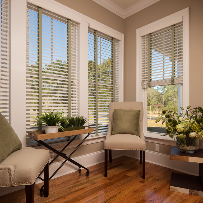 Blinds offer practical light control while maintaining a clean, understated look that works well in many St. Augustine homes. Faux wood and wood blinds are commonly selected for their durability and ability to complement historic interiors without overpowering original details.